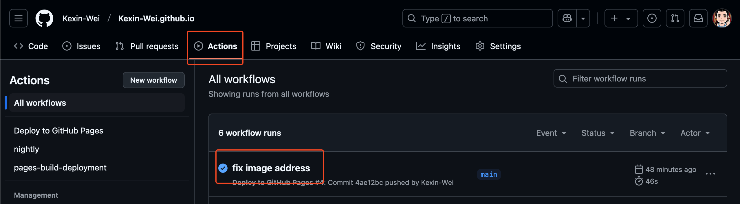You may want to see whether you page is deployed, then you can go to the Action under Github repo and click inside of each run to see what blocks it.